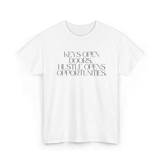 Keys Open Doors, Hustle Opens Opportunities. White Tee