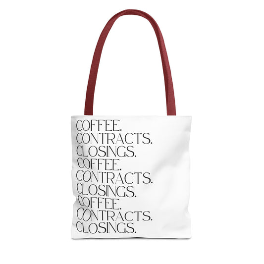 Coffee, Contracts, Closings. Black Tote Bag