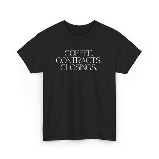 Coffee. Contracts. Closings. Black Tee
